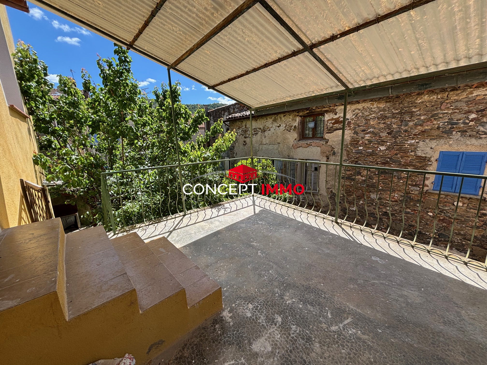 Collobrières (83610)COLLOBRIERES - Uniquement chez Concept Immo - Maison de ville avec jardin, comprenant: vaste séjour-cuisine US, bureau, wc. A l'étage: dégagement, deux chambres, salle d'eau avec wc. Dépendance de 45m2 avec salle d'eau et wc complètement indépendant avec accès depuis la rue. Ensemble refait à neuf, et cuisine et escalier à terminer. Idéalement situé au coeur du village, accès toutes commodités à pied. Visible avec Amic DUCELLIER.