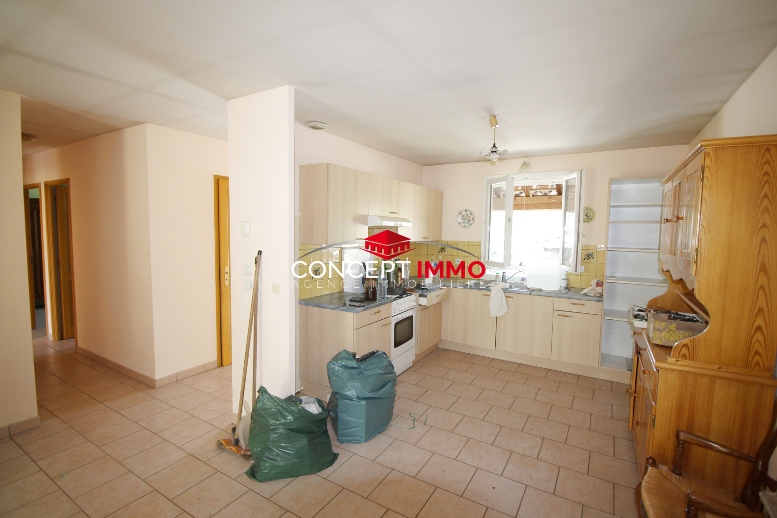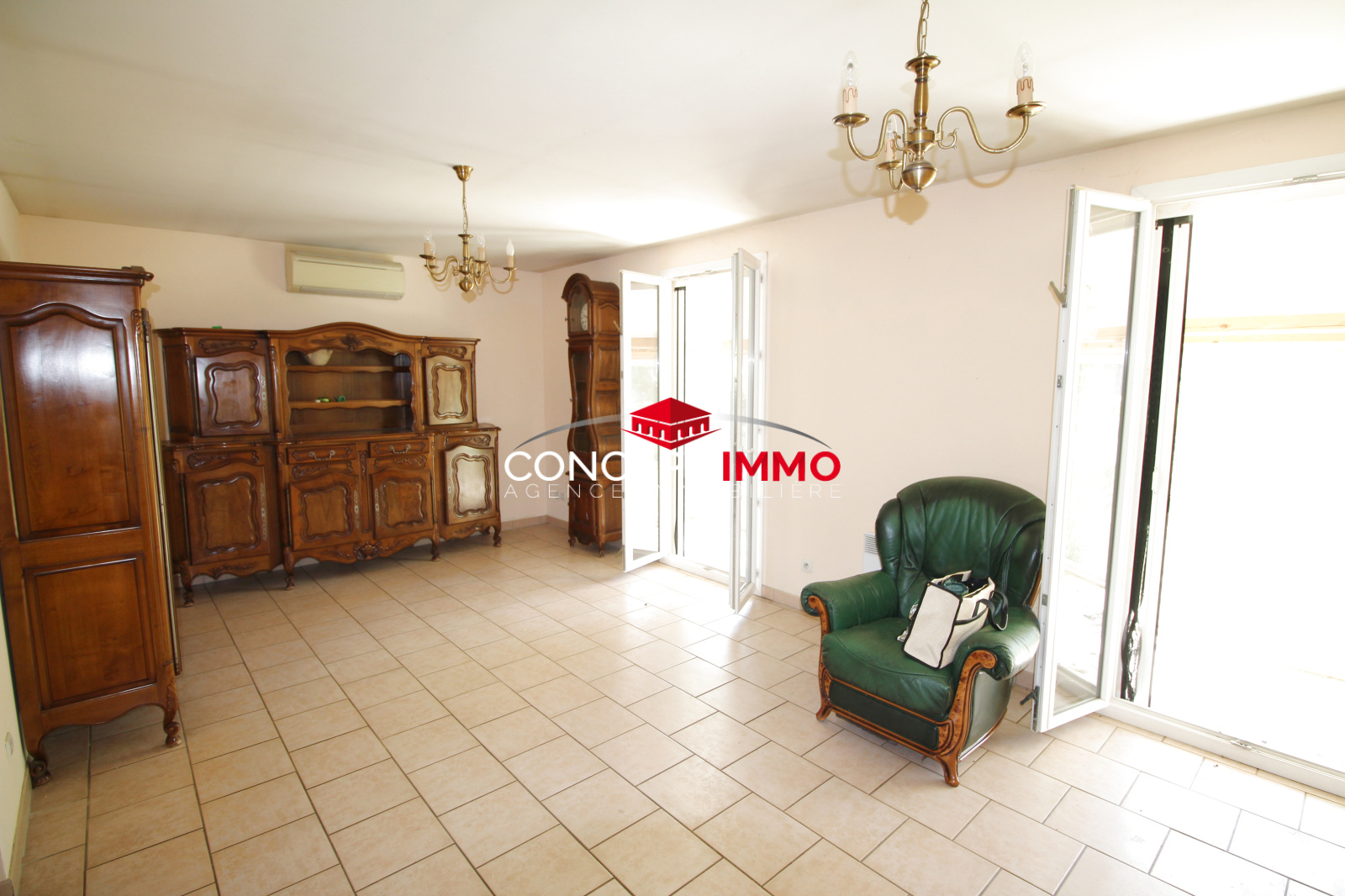 Grand salon séjour climatisé avec accés au jardin, cuisine, trois chambres, wc separé, véranda et garage pour un vrai confort à vivre.