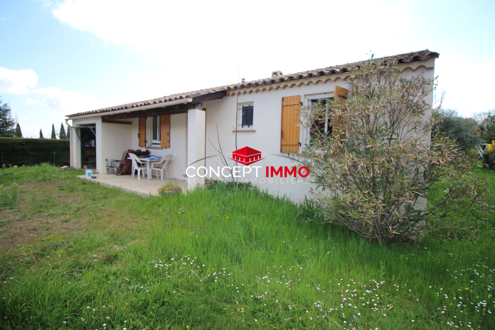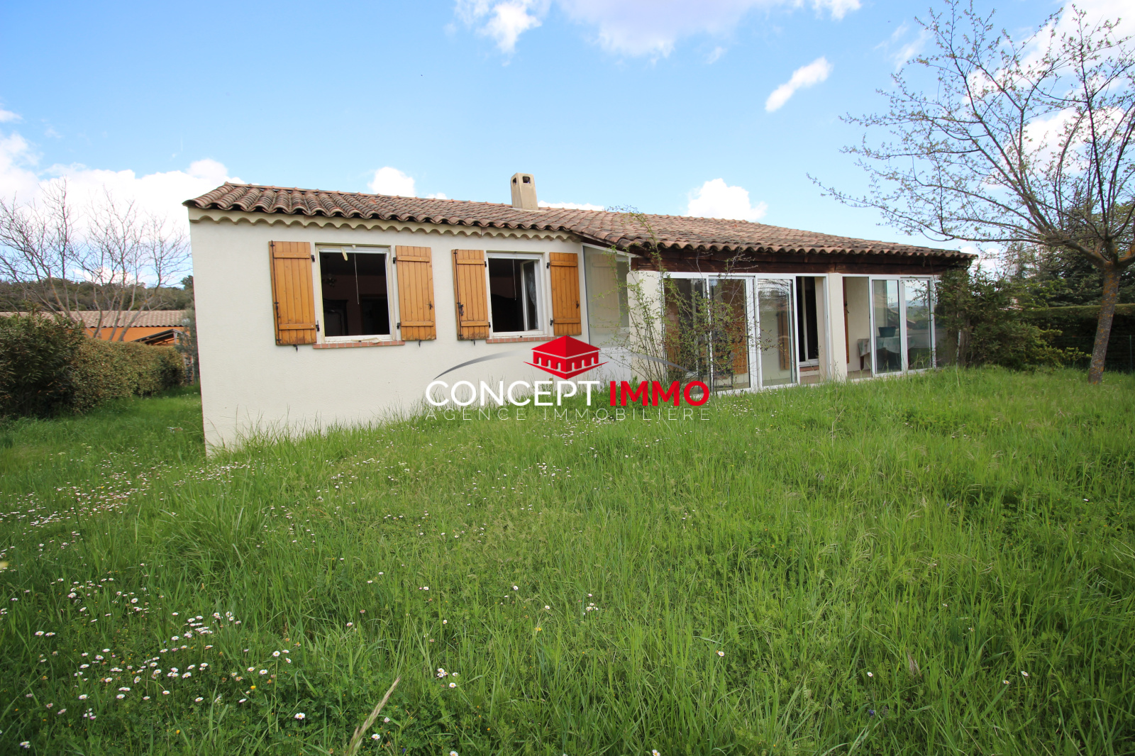 Régusse (83630)Joli pavillon de Plain-pied de 90 m2 édifié sur 1600 m2 de terrain plat détachable avec vue sur les oliviers.