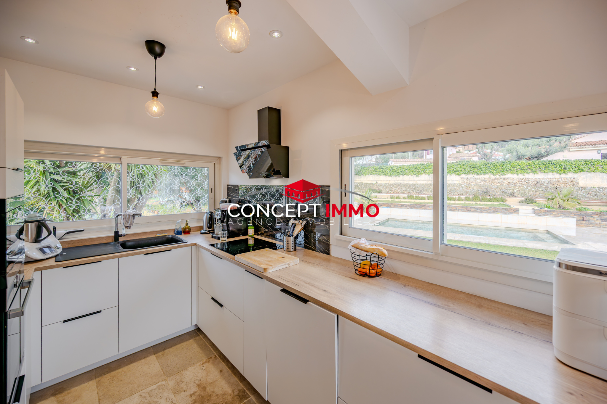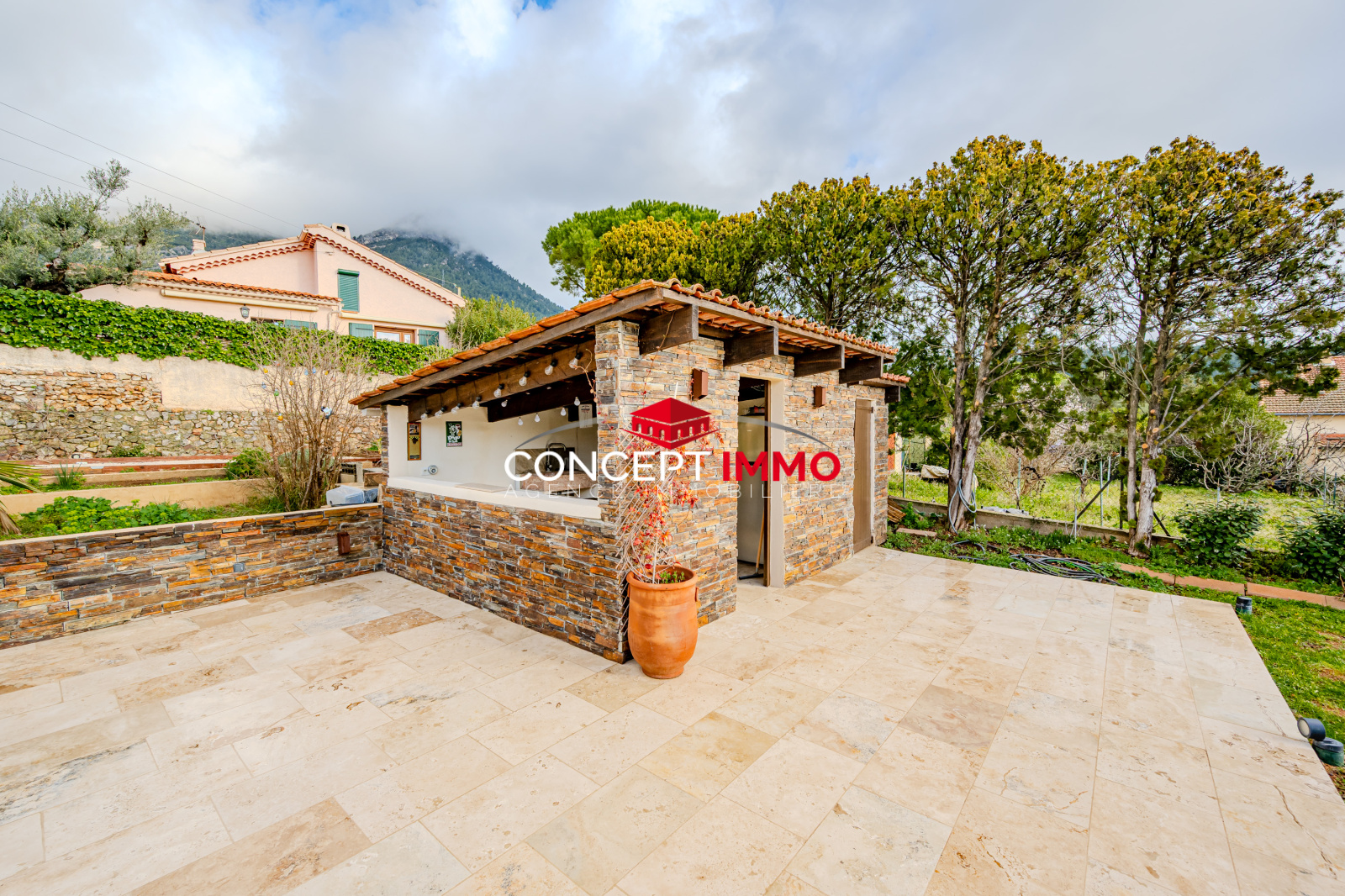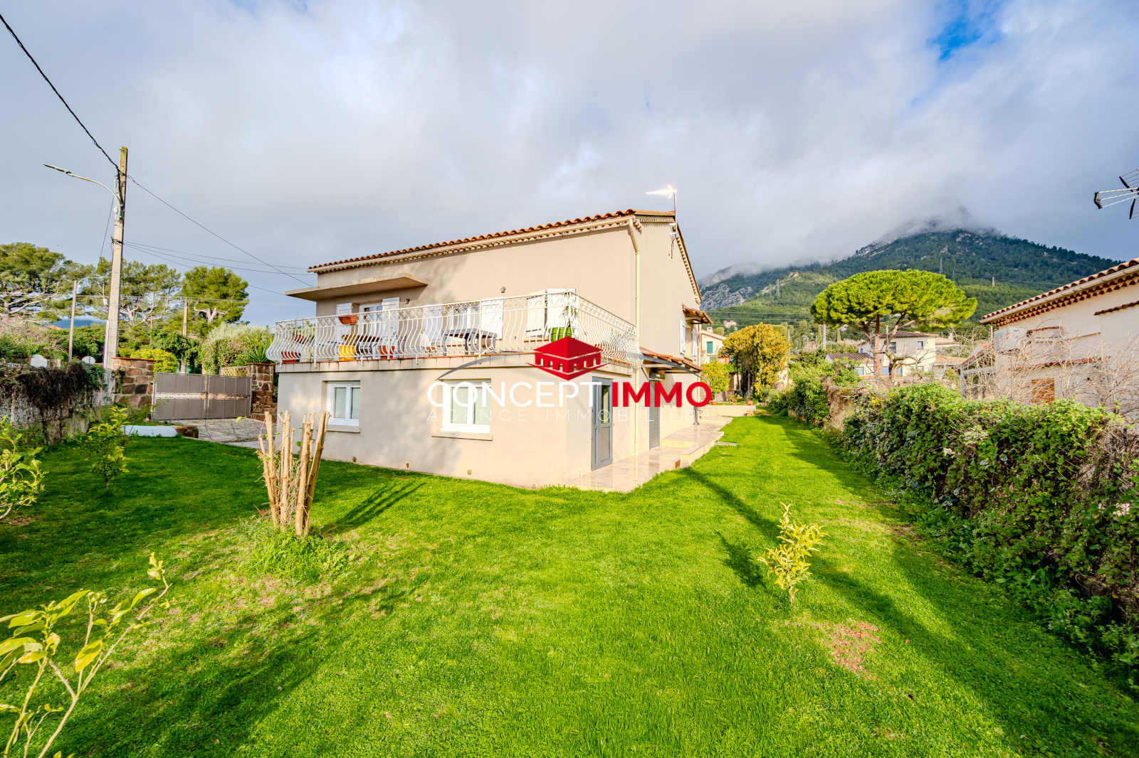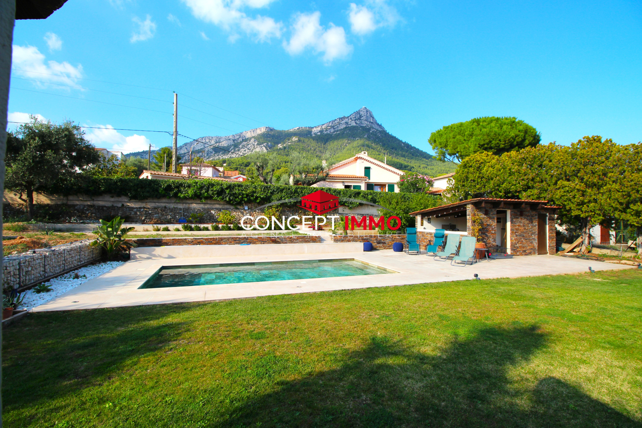 A l'exterieur, le vaste jardin invite à la détente et aux moments de partage. Profitez pleinement de la piscine au sel, chauffée, veritable atout pour savourer l'été en toute intimité avec vue sur le Coudon.