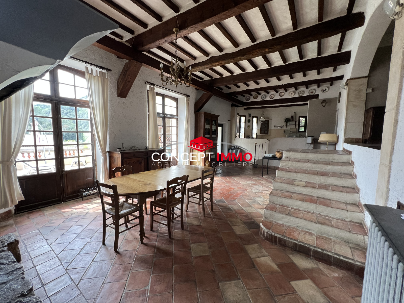 Superbe maison de village atypique d'environ 230m2 avec cachet en pierre, offrant une vue exceptionnelle et une qualité de construction irréprochable. Cette propriété unique dispose d'un double garage au rez-de-chaussée avec deux ateliers, ainsi qu'un espace brut à aménager pouvant devenir un petit appartement d'appoint. Au premier niveau, vous trouverez une entrée, un spacieux séjour avec cuisine cathédrale équipée d'une cheminée, un cellier et des toilettes. La terrasse avec cuisine d'été et piscine offre une vue imprenable sur les environs. Le deuxième étage se compose d'une chambre, d'un bureau, d'une salle de bain avec toilettes et d'une suite parentale donnant sur un solarium. Enfin, deux chambres, une salle de bains avec toilettes et un placard. Cette propriété dispose également de vastes dépendances. Des travaux sont à prévoir. Ne manquez pas cette opportunité de devenir propriétaire d'une maison de caractère unique avec de nombreuses possibilités d'aménagement et une vue à couper le souffle.