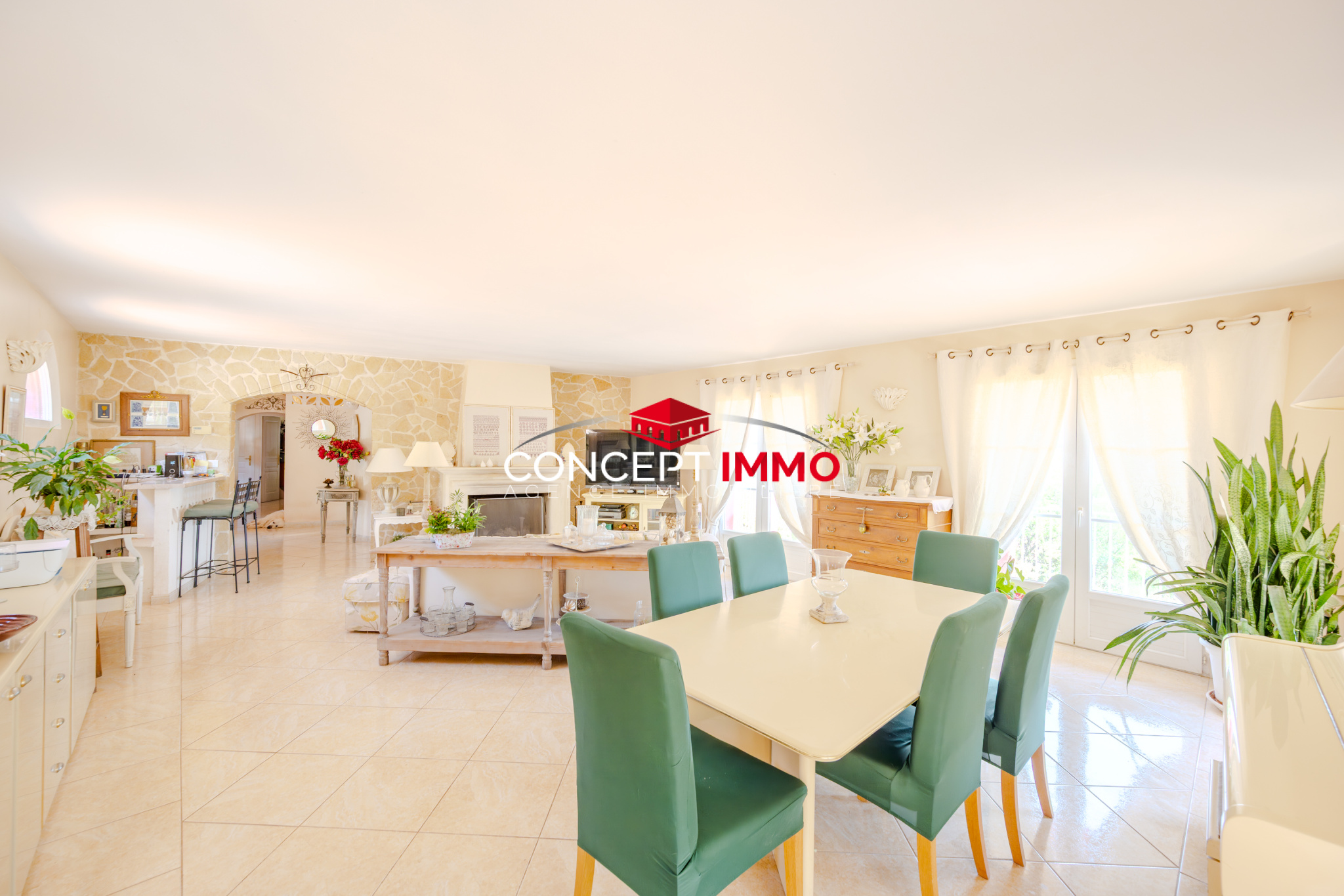 A ce superbe bien s'ajoute un garage de 20 m2, la possibilité d'aménager les 36 m2 des quatres pans, le chauffage au sol en géothermie ainsi que la climatisation et cheminée feu de bois, eau de ville et fosse septique aux normes.